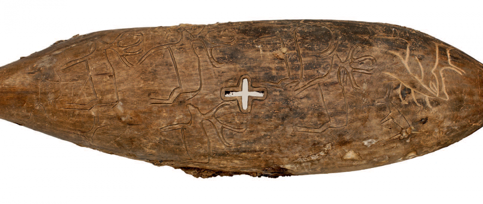 Музыкыльный инструмент "комуз - хуур" найденный в пещерном кладбище Көк тюркских времен. Ховд аймаг, Монголия