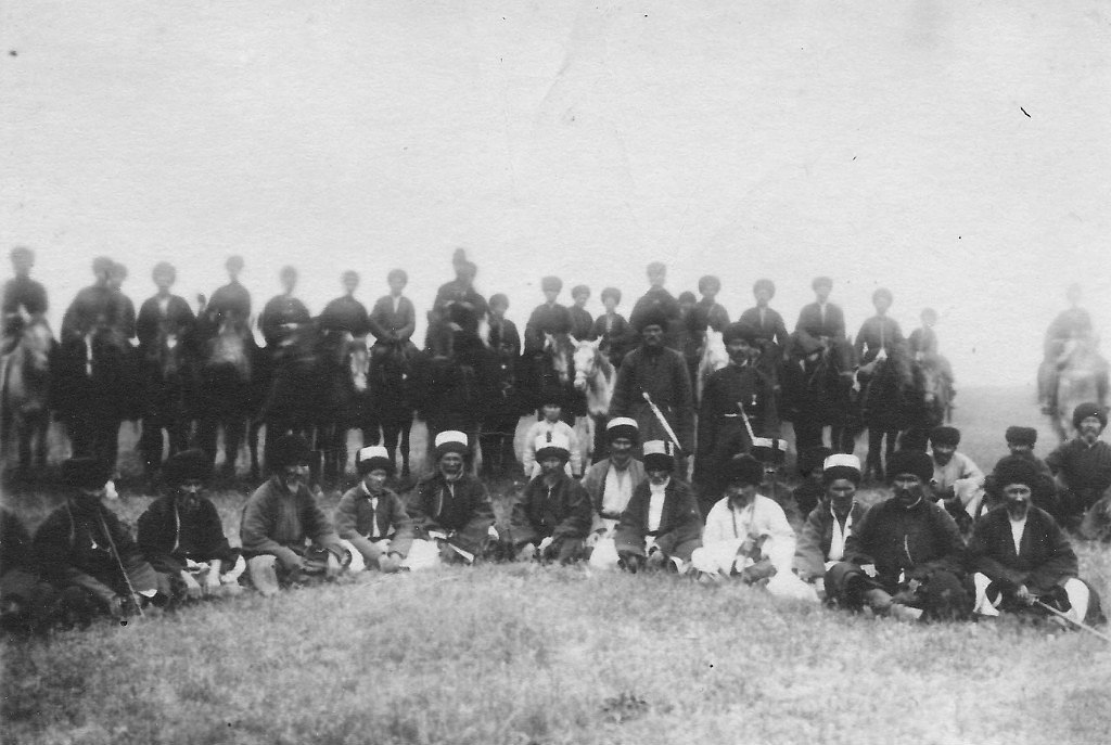Ногайские аксакалы, мужчины и молодежь в степи. Ногайская степь, Кавказ. Начало ХХ века.