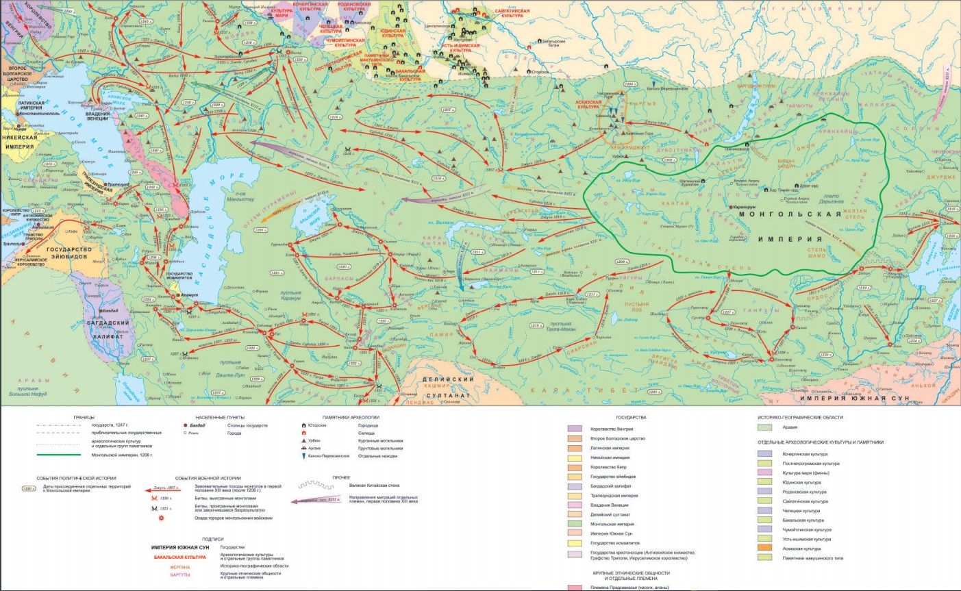 Войны монголов в евразийских степях. Первая половина XIII века // Большой Атлас истории и культуры Казахстана. Алматы: АБДИ Компани, 2008. Карта С. 236-237