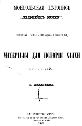 Монгольская летопись Эрдэнийн Эрихэ - материалы для истории Халхи