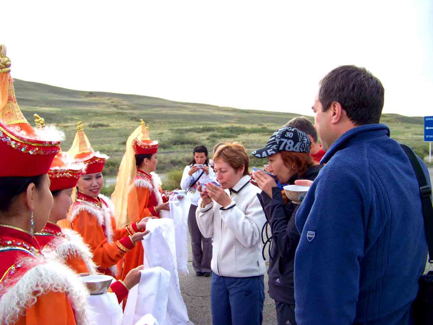 Встреча туристов на земле солнечной Тывы. Обычай тувинцев при встрече гостей предлагать чай с молоком - сюттюг шай