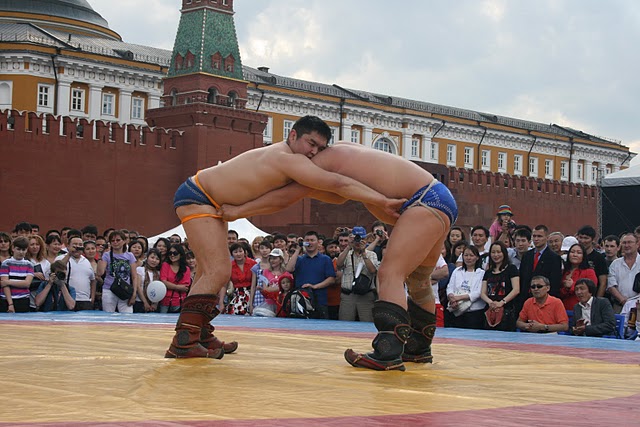 Бурятская борьба (Бухэ-барилдаан) на Красной площади.