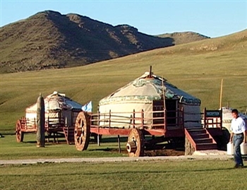"Татарские" или кереитские дома на повозках сегодня у потомков - кереев Баян-Ульгия.