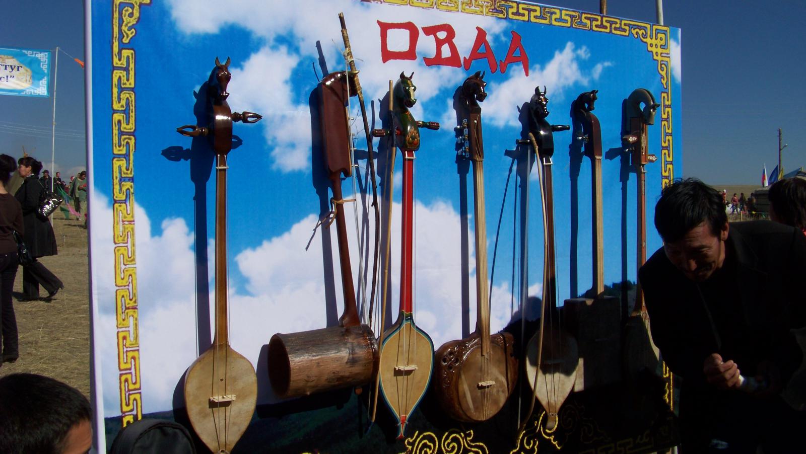 Тувинские национальные инструменты: Игил и бызаанчы.