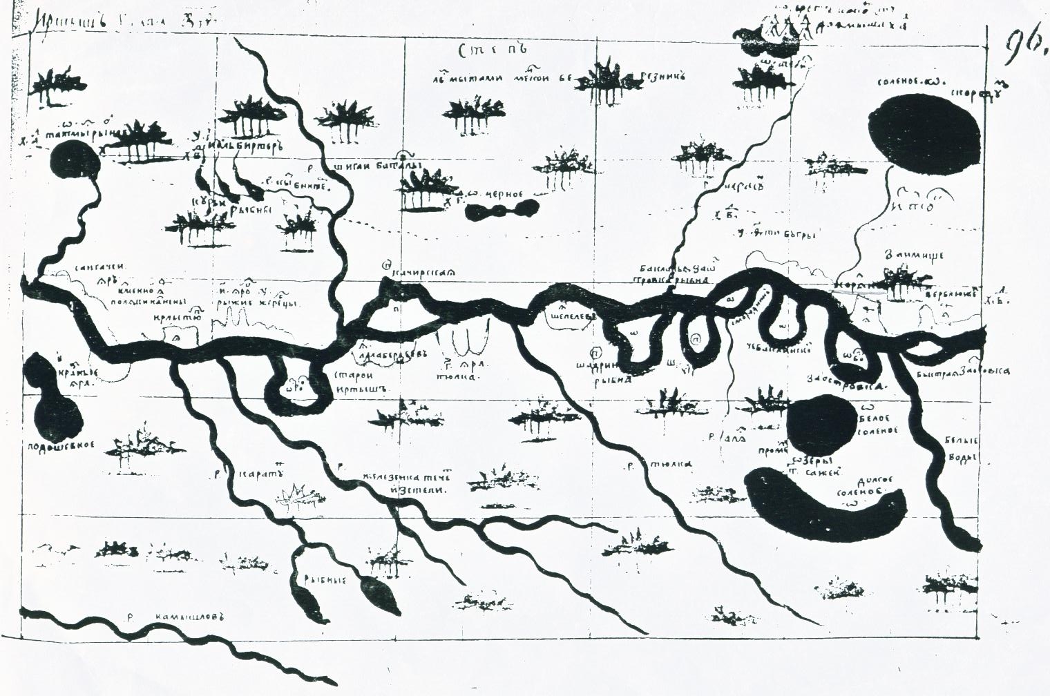 Павлодарское Прииртышье, 17 век. Карта С.У.Ремезова