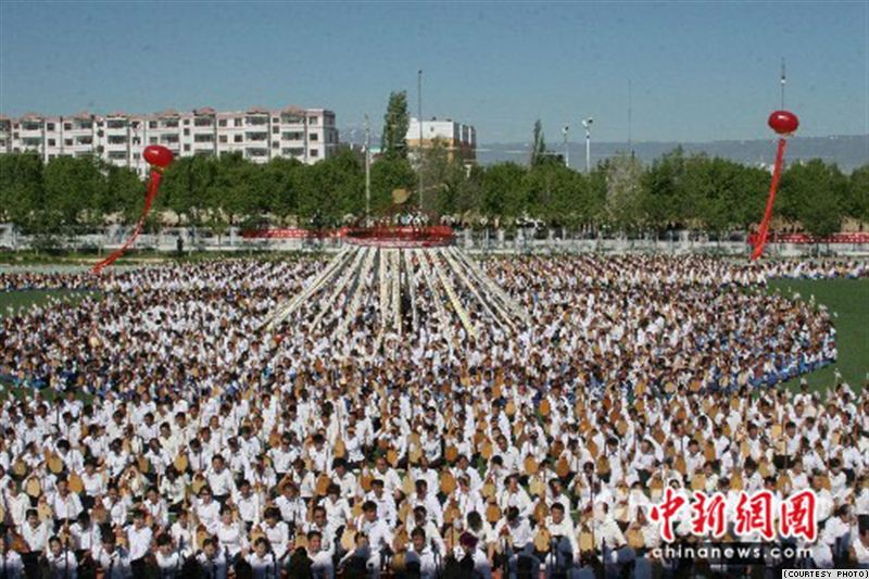 Казахи района Толы в Китае устанавливают рекорд массовой игры на домбре, 30 мая, 2010 г
